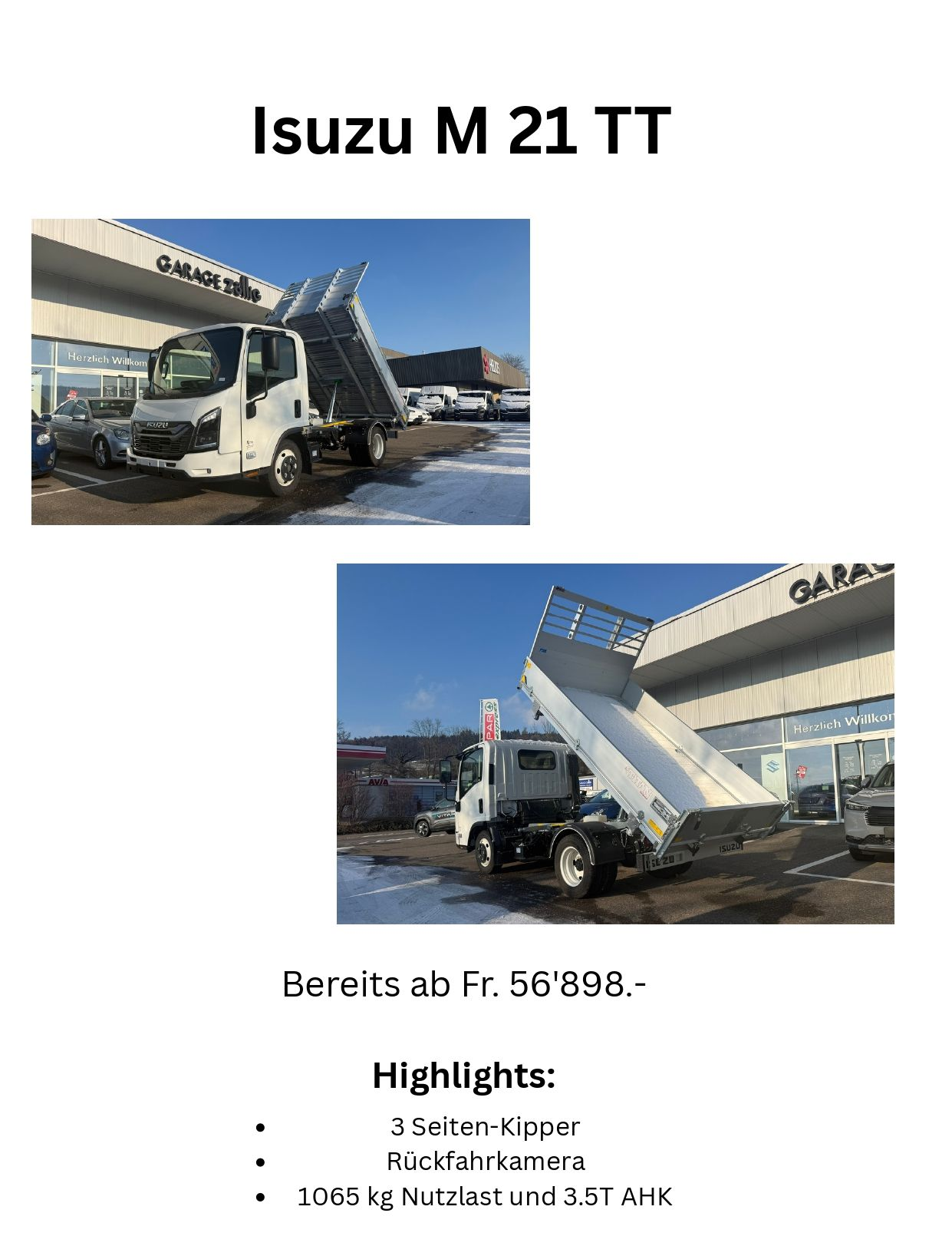 Isuzu M 21 und F Serie OBD-D: Die beiden Modelle sind für harte Sachen gerüstet, als Brückenwagen oder auch als Kippe, oder Kühlwagen, 3.5 T Anhängerlast, lässt sich Ihr Fahrzeug sehr vielseitig einsetzten. Er hebt sich durch sehr guter Fahrkomfort und hoher Nutzlast hervor.
