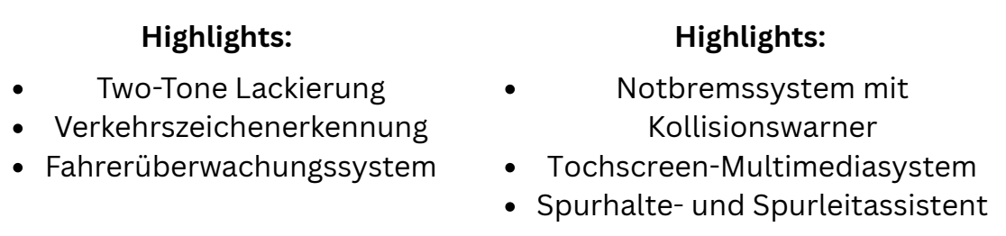 - Suzuki Ignis und Swift: Die beiden Modellen heben sich mit dem geringen Verbrauch dank Hybridtechnik hervor. Das Ideale Fahrzeug für die Stadt und Land.